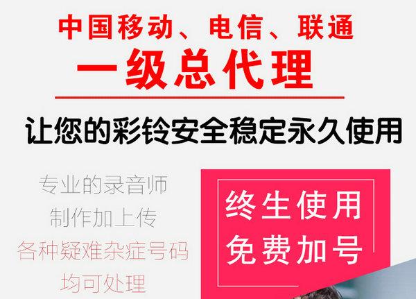 承接各类商务彩铃制作,商业彩铃制作,企业彩铃制作,视频彩铃制作,真人高端彩铃制作,集团彩铃制作,包写词、包录制、包上传一条龙服务,让您后顾无忧,我们专业制作各类专业的企业彩铃,详情请联系电话:13101529820微信 (电话同步)